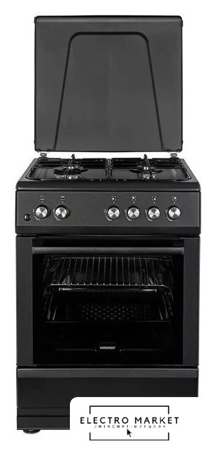 газовая панель + электрический духовой шкаф, газ-контроль конфорок, поверхность: эмалированная сталь, крышка из закалённого стекла, энергопотребление A, управление электронное, таймер электронный, размеры (ШхГхВ): 60x60x85 см, цвет черный