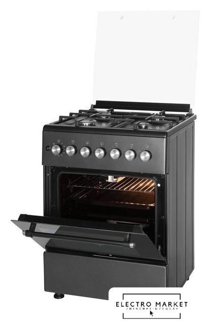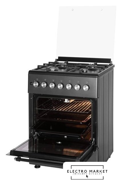 газовая панель + электрический духовой шкаф, газ-контроль конфорок, поверхность: эмалированная сталь, крышка из закалённого стекла, энергопотребление A, управление механическое, таймер электронный, размеры (ШхГхВ): 60x60x85 см, цвет белый