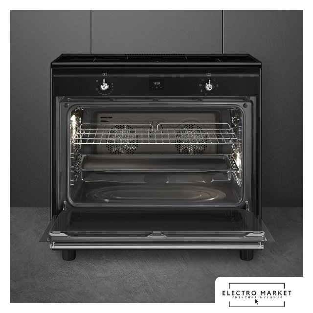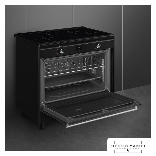 индукционная панель + электрический духовой шкаф, поверхность: нержавеющая сталь, энергопотребление A, управление сенсорное, таймер электронный, размеры (ШхГхВ): 90x60x90 см, цвет нержавеющая сталь/черный