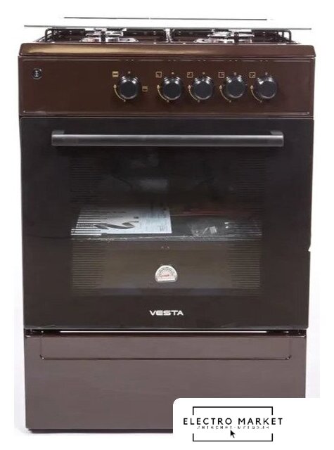 газовая панель + газовый духовой шкаф, поверхность: эмалированная сталь, крышка из закалённого стекла, управление механическое, без таймера, размеры (ШхГхВ): 50x60x85 см, цвет коричневый