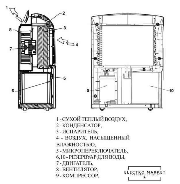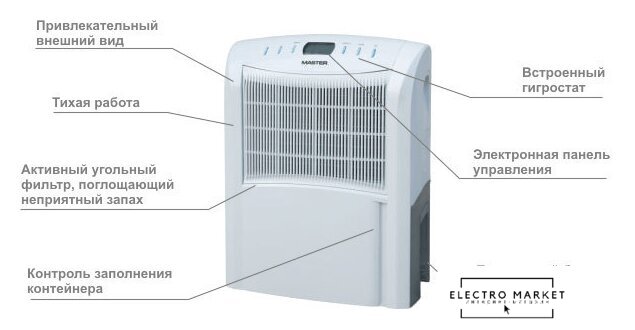 бытовой, конденсационный, 20 л/сут, площадь помещения 390 м², расход воздуха 200 м³/ч, резервуар 4.7 л