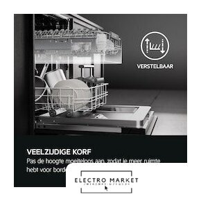загрузка на 14 комплектов посуды, сенсорное управление, 7 программ, 59.6x55x82 см, черный цвет, сушка: стандартная (конденсация)/с открыванием дверцы, индикация на полу: луч