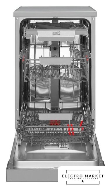 | Дополнительные опции | сокращение времени мойки, дополнительная сушка, усиление интенсивности мойки (гигиеническая мойка), половинная загрузка (экономия воды), программа самоочистки |