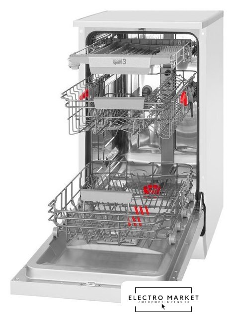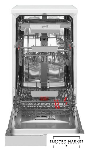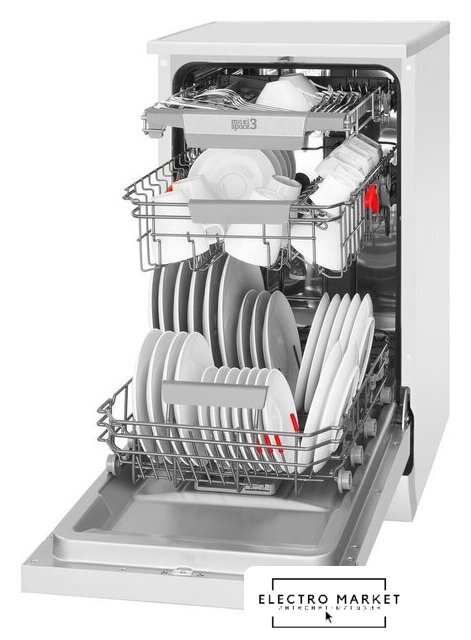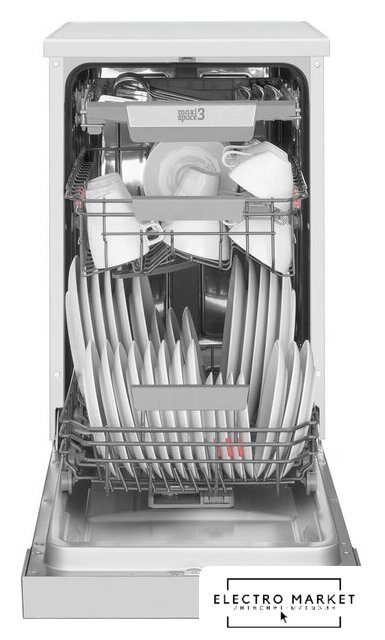 | Дополнительные опции | сокращение времени мойки, дополнительная сушка, усиление интенсивности мойки (гигиеническая мойка), половинная загрузка (экономия воды), программа самоочистки |