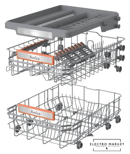 | Особенности верхней корзины | регулировка положения по высоте, складывающиеся держатели |