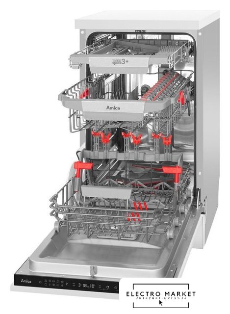 | Дополнительные опции | сокращение времени мойки, дополнительная сушка, усиление интенсивности мойки (гигиеническая мойка), половинная загрузка (экономия воды), программа самоочистки |