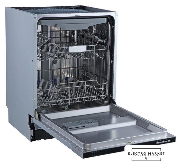 загрузка на 14 комплектов посуды, электронное управление, 6 программ, белый/черный цвет, сушка: стандартная (конденсация)/с открыванием дверцы, индикация на полу: луч