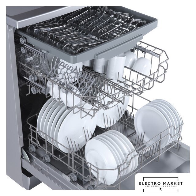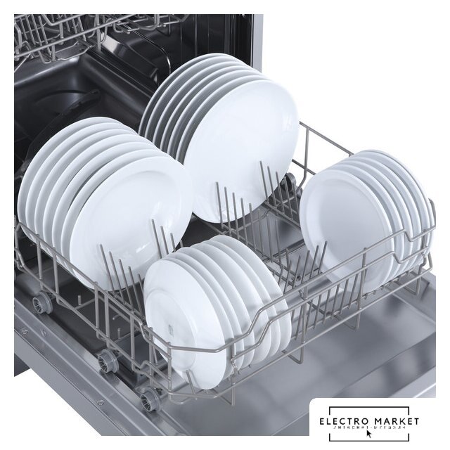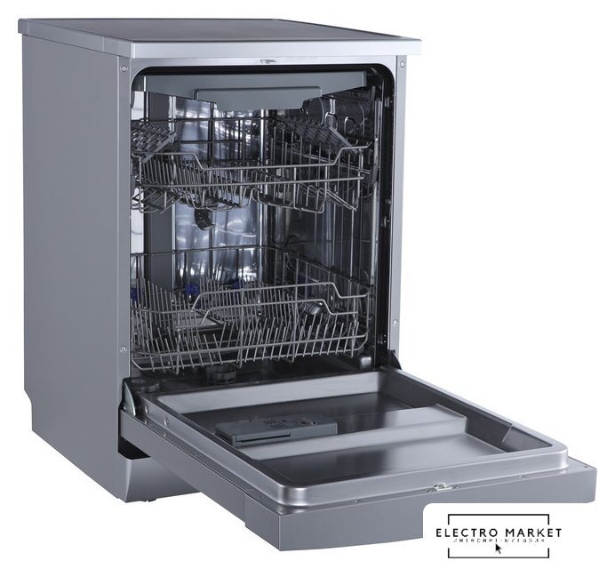 загрузка на 6 комплектов посуды, электронное управление, 6 программ, серебристый цвет, сушка: стандартная (конденсация), индикация на полу: нет