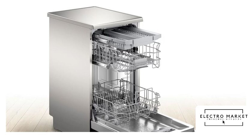 загрузка на 14 комплектов посуды, электронное управление, 6 программ, темная сталь цвет, сушка: с теплообменником, индикация на полу: нет