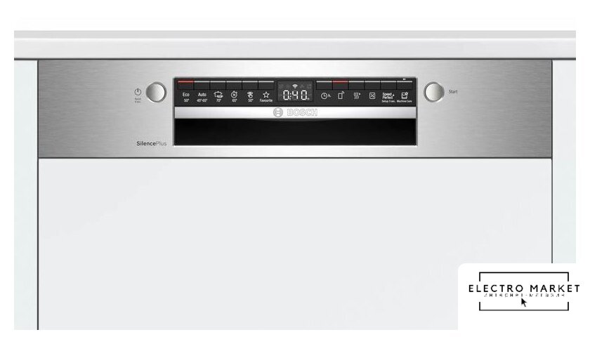 загрузка на 14 комплектов посуды, сенсорное управление, 8 программ, 59.8x55x81.5 см, серебристый цвет, сушка: с теплообменником, индикация на полу: проекция дисплея