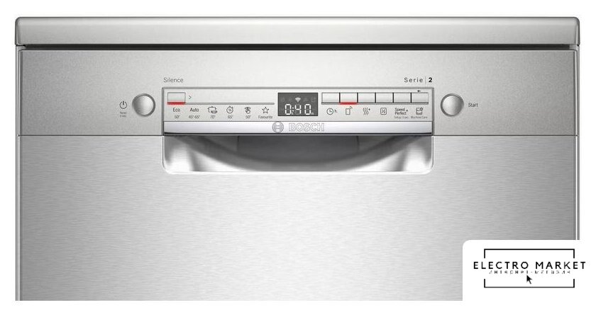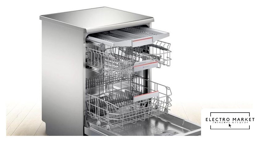 загрузка на 14 комплектов посуды, электронное управление, 7 программ, серебристый цвет, сушка: с теплообменником, индикация на полу: нет