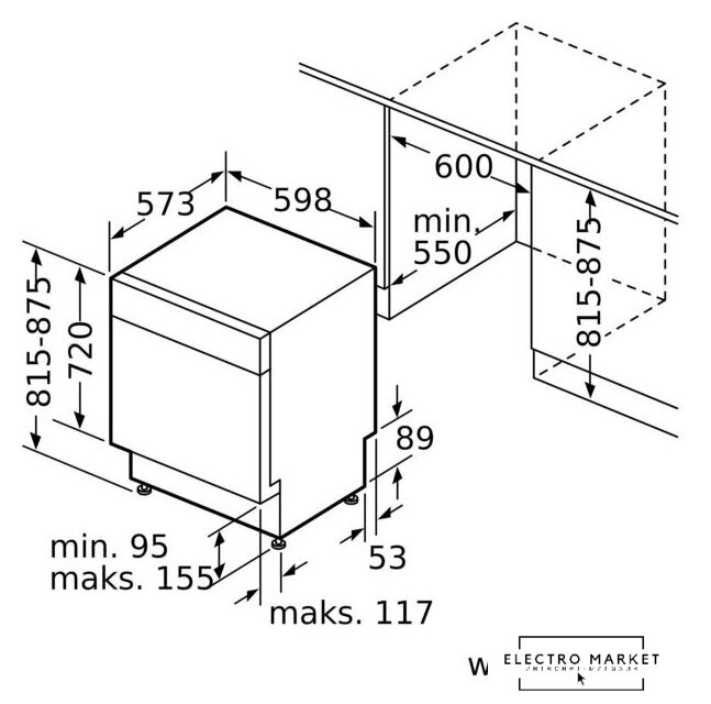 загрузка на 15 комплектов посуды, сенсорное управление, 8 программ, 59.6x57x82 см, нержавеющая сталь/черный цвет, сушка: с открыванием дверцы, индикация на полу: нет