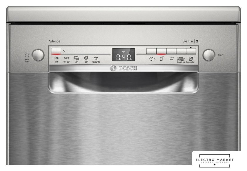 загрузка на 14 комплектов посуды, сенсорное управление, 7 программ, нержавеющая сталь цвет, сушка: конденсационная, половинная загрузка, индикация на полу: нет