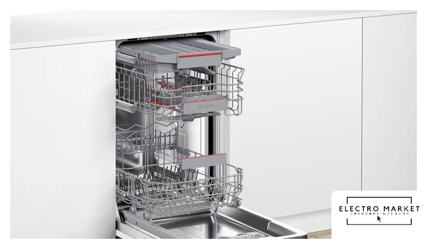 Особенности верхней корзины | регулировка положения по высоте, держатели для бокалов |