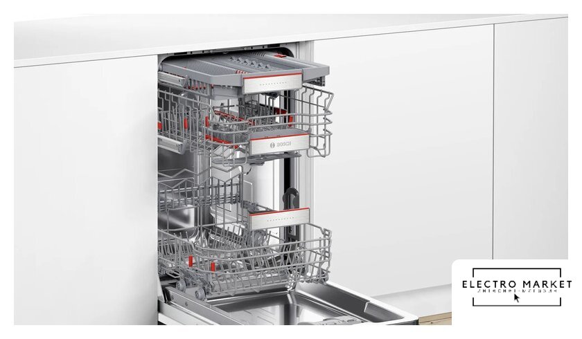 Особенности верхней корзины | регулировка положения по высоте, резиновые держатели для бокалов |