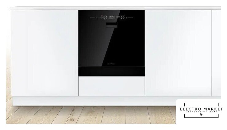 загрузка на 14 комплектов посуды, сенсорное управление, 9 программ, 59.5x55.2x82 см, черный цвет, сушка: стандартная (конденсация)/с открыванием дверцы, индикация на полу: луч