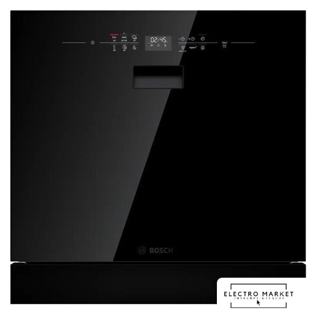 загрузка на 13 комплектов посуды, электронное управление, 5 программ, 59.8x55x82 см, черный цвет, сушка: стандартная (конденсация), индикация на полу: нет