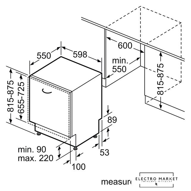 загрузка на 14 комплектов посуды, сенсорное управление, 8 программ, 59.8x55x81.5 см, черный цвет, сушка: с теплообменником/вентиляционная с нагревом, индикация на полу: проекция дисплея