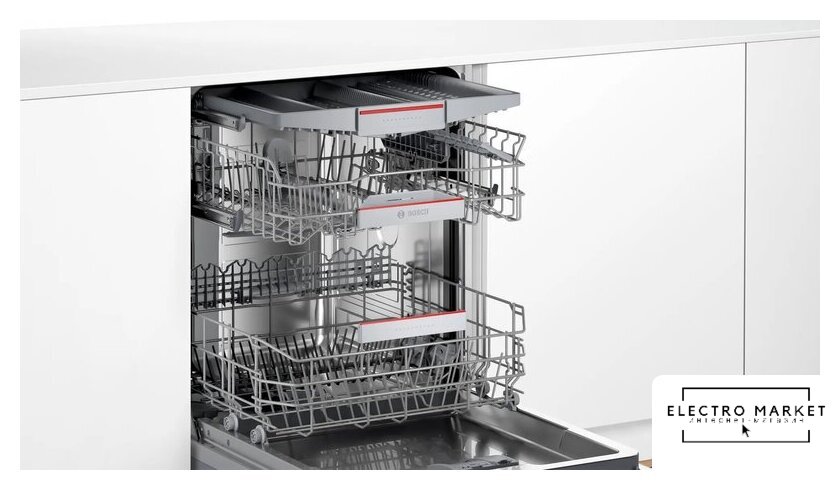 Особенности верхней корзины | регулировка положения по высоте, держатели для бокалов |