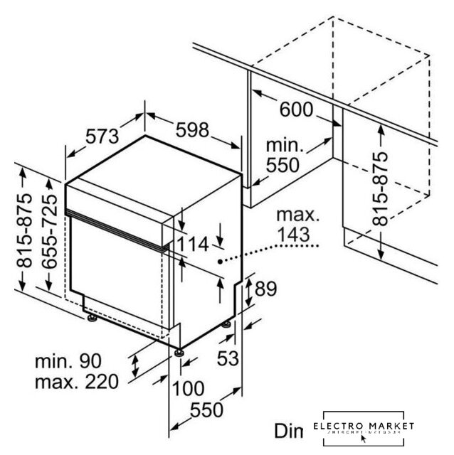 загрузка на 15 комплектов посуды, сенсорное управление, 8 программ, 59.6x55x82 см, черный цвет, сушка: стандартная (конденсация), индикация на полу: проекция дисплея