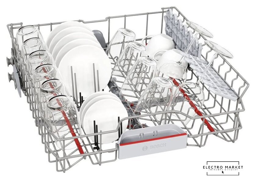 Особенности верхней корзины | регулировка положения по высоте, держатели для бокалов |