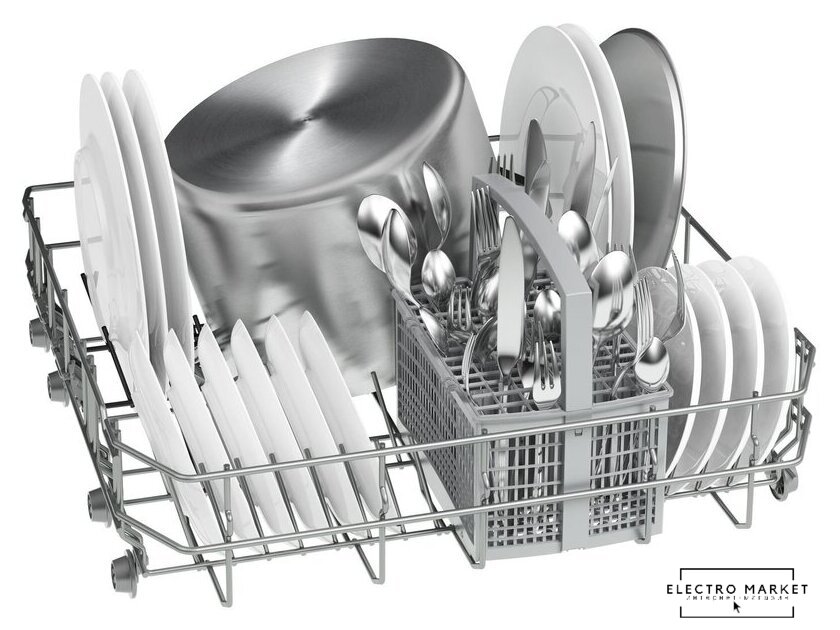 загрузка на 10 комплектов посуды, электронное управление, 7 программ, 59.8x55x82 см, нержавеющая сталь/черный цвет, сушка: стандартная (конденсация)/с открыванием дверцы, индикация на полу: луч