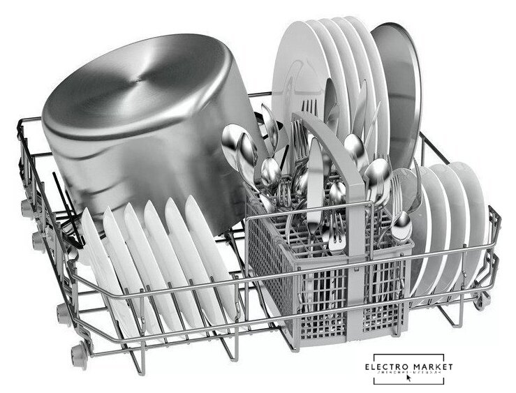 загрузка на 14 комплектов посуды, электронное управление, 7 программ, 59.8×55×82 см, серебристый цвет, сушка: конденсационная, половинная загрузка, индикация на полу: нет