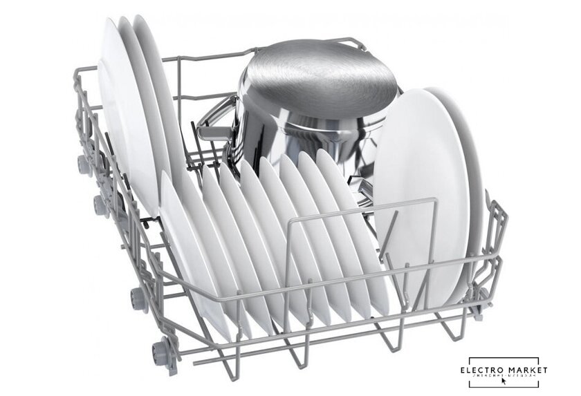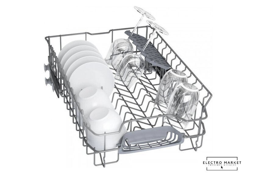 | Особенности верхней корзины | регулировка положения по высоте, резиновые держатели для бокалов, складывающиеся держатели |