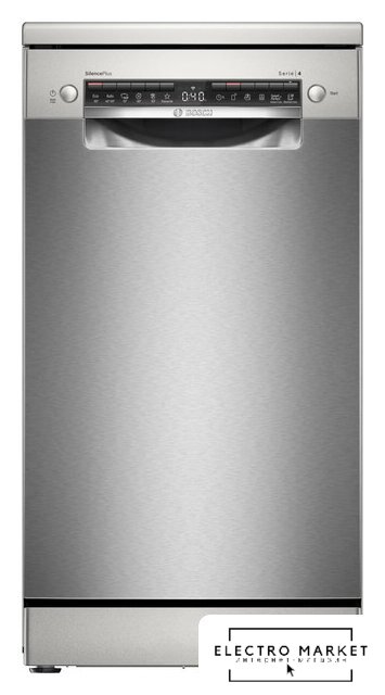загрузка на 14 комплектов посуды, электронное управление, 7 программ, серебристый цвет, сушка: с теплообменником, индикация на полу: нет