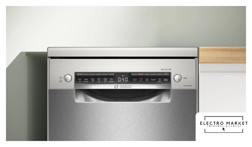 | Дополнительные опции | сокращение времени мойки, дополнительная сушка, усиление интенсивности мойки (гигиеническая мойка), половинная загрузка (экономия воды) |