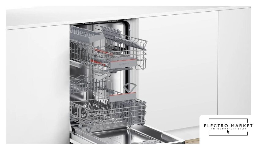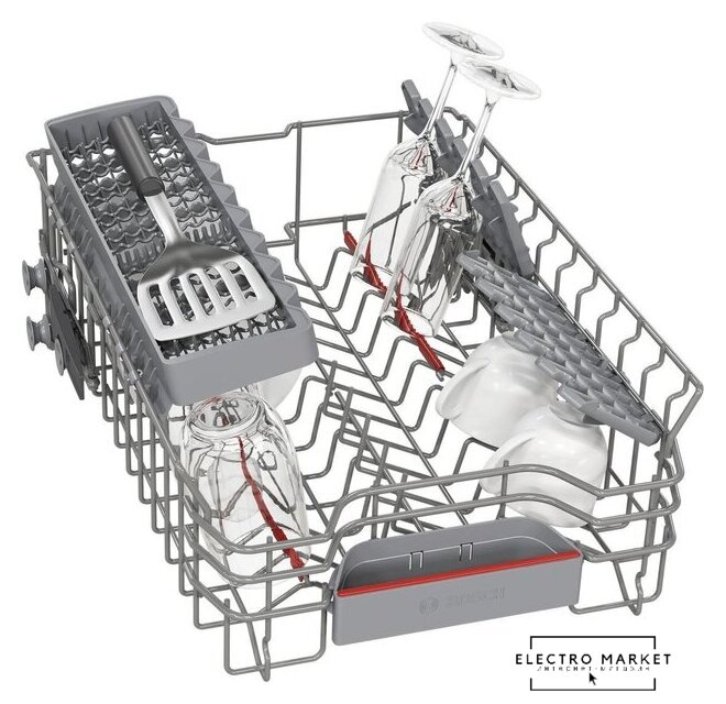 Особенности верхней корзины | регулировка положения по высоте, держатели для бокалов |