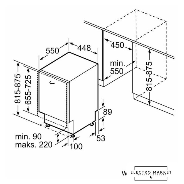 загрузка на 13 комплектов посуды, электронное управление, 5 программ, 59.8x55x81.5 см, черный цвет, сушка: с теплообменником, индикация на полу: луч
