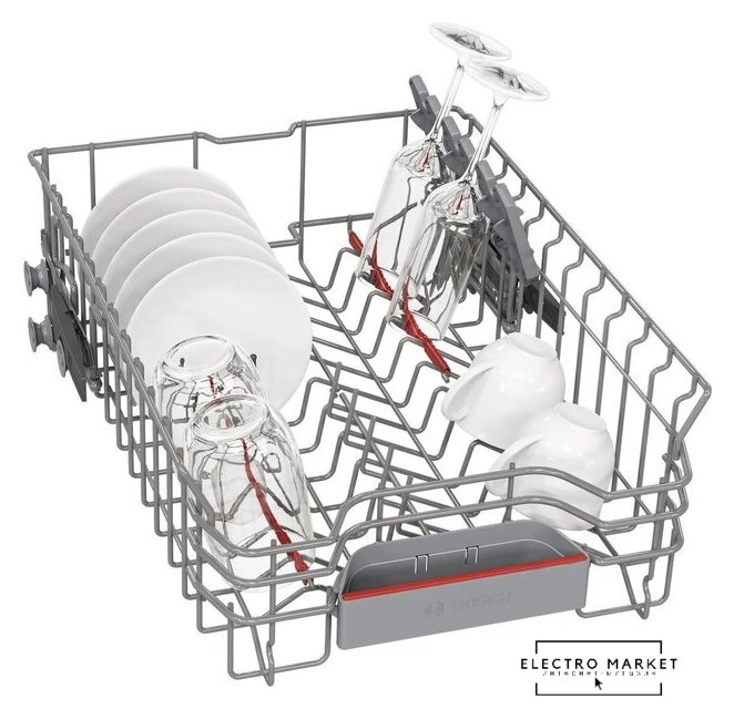 Особенности верхней корзины | регулировка положения по высоте, держатели для бокалов |