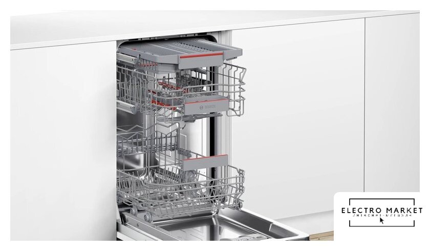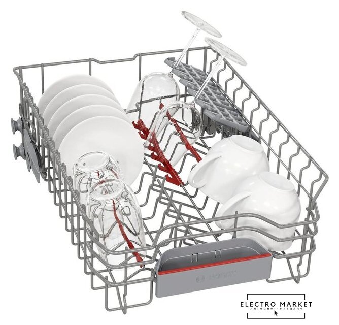 Особенности верхней корзины | регулировка положения по высоте, держатели для бокалов, складывающиеся держатели |