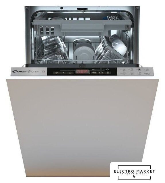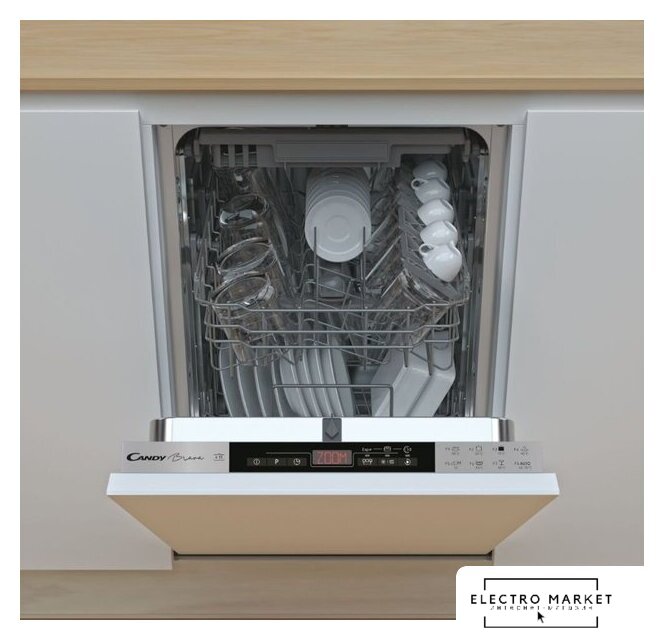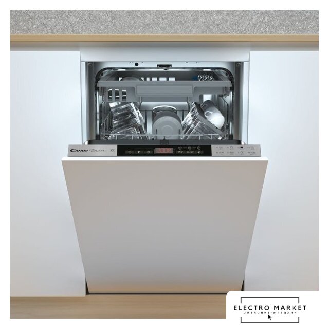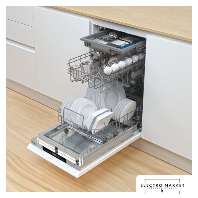 загрузка на 10 комплектов посуды, электронное управление, 6 программ, 44.8×55×82 см, черный цвет, половинная загрузка, индикация на полу: луч