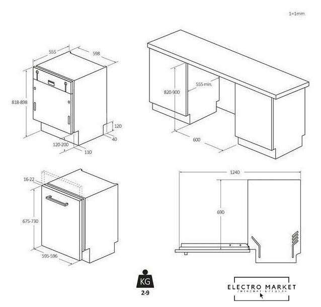 загрузка на 12 комплектов посуды, электронное управление, 6 программ, 59.8x55x81.5 см, нержавеющая сталь цвет, сушка: с теплообменником, индикация на полу: луч