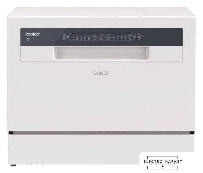 загрузка на 6 комплектов посуды, сенсорное управление, 7 программ, белый цвет, индикация на полу: нет