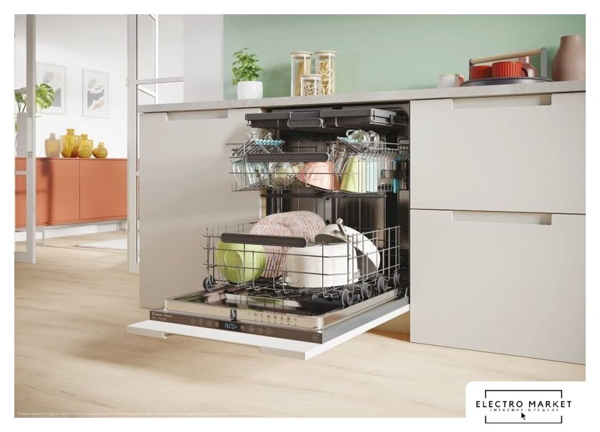 загрузка на 16 комплектов посуды, сенсорное управление, 7 программ, 59.8x55.5x82 см, черный цвет, сушка: стандартная (конденсация)/с открыванием дверцы, индикация на полу: луч