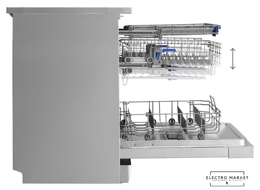 загрузка на 14 комплектов посуды, электронное управление, 7 программ, нержавеющая сталь цвет, сушка: с открыванием дверцы