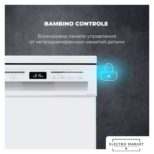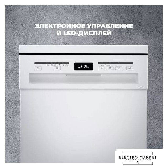 загрузка на 15 комплектов посуды, сенсорное управление, 8 программ, белый цвет, сушка: с открыванием дверцы/вентиляционная с нагревом, индикация на полу: нет