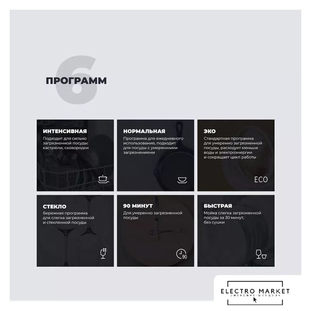 загрузка на 5 комплектов посуды, сенсорное управление, 7 программ, черный цвет, сушка: стандартная (конденсация)/с открыванием дверцы, индикация на полу: нет