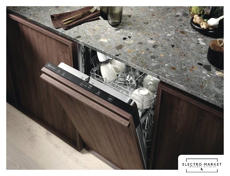 загрузка на 10 комплектов посуды, электронное управление, 9 программ, 44.8x55.5x82 см, черный цвет, сушка: с открыванием дверцы, индикация на полу: нет