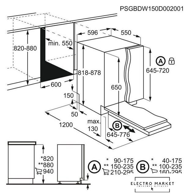 загрузка на 9 комплектов посуды, электронное управление, 8 программ, 44.6x57.5x82 см, нержавеющая сталь/черный цвет, сушка: с открыванием дверцы, индикация на полу: нет