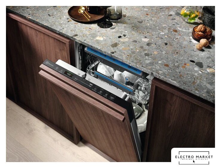 загрузка на 14 комплектов посуды, электронное управление, 6 программ, 59.8x55x82 см, черный цвет, сушка: стандартная (конденсация)/с открыванием дверцы, индикация на полу: луч