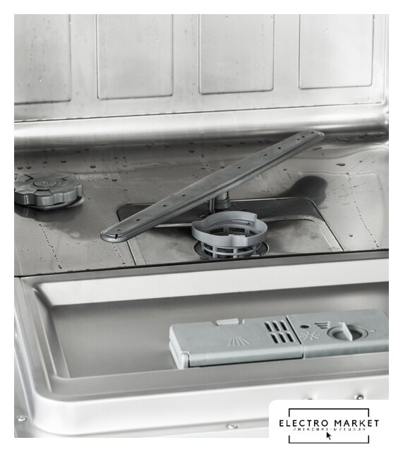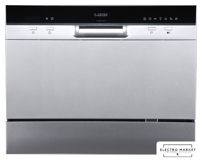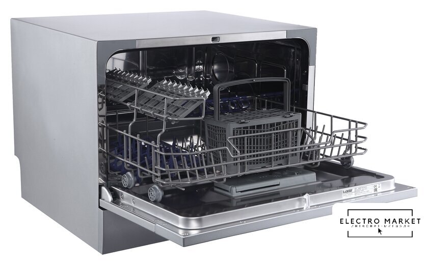 загрузка на 6 комплектов посуды, электронное управление, 5 программ, серебристый цвет, сушка: конденсационная, индикация на полу: нет