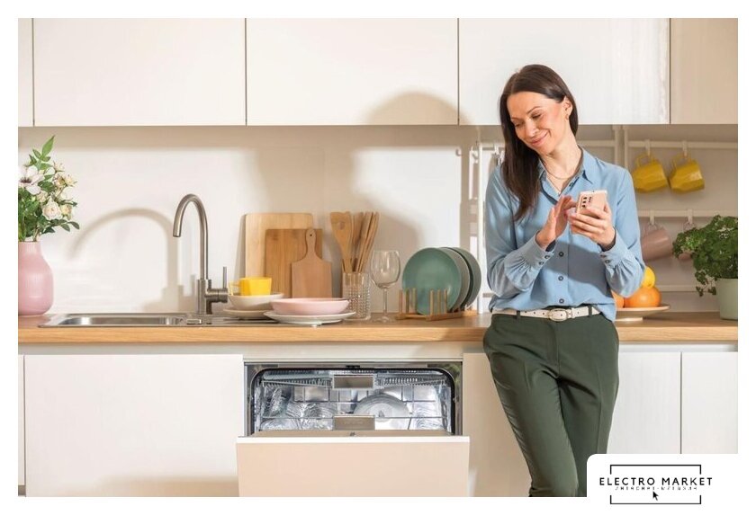 загрузка на 15 комплектов посуды, сенсорное управление, 9 программ, 59.8×55×82 см, черный цвет, сушка: вентиляционная, половинная загрузка, индикация на полу: луч