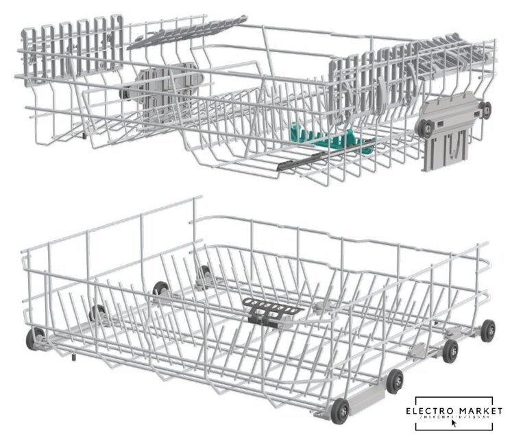 Особенности верхней корзины | регулировка положения по высоте, держатели для бокалов |
