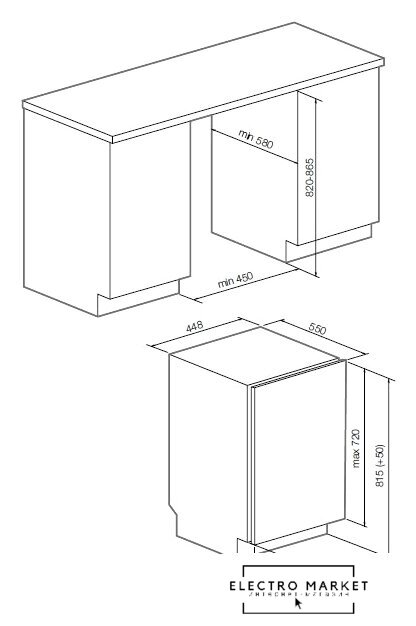 загрузка на 10 комплектов посуды, электронное управление, 8 программ, 44.6x55x82 см, черный цвет, сушка: с открыванием дверцы, индикация на полу: луч