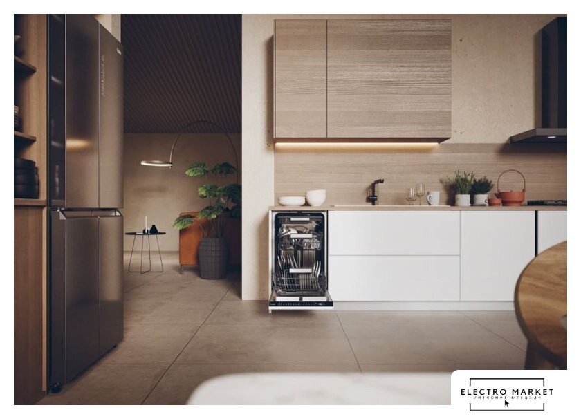 загрузка на 10 комплектов посуды, сенсорное управление, 9 программ, 45x57x82 см, черный цвет, сушка: с открыванием дверцы/вентиляционная, индикация на полу: луч