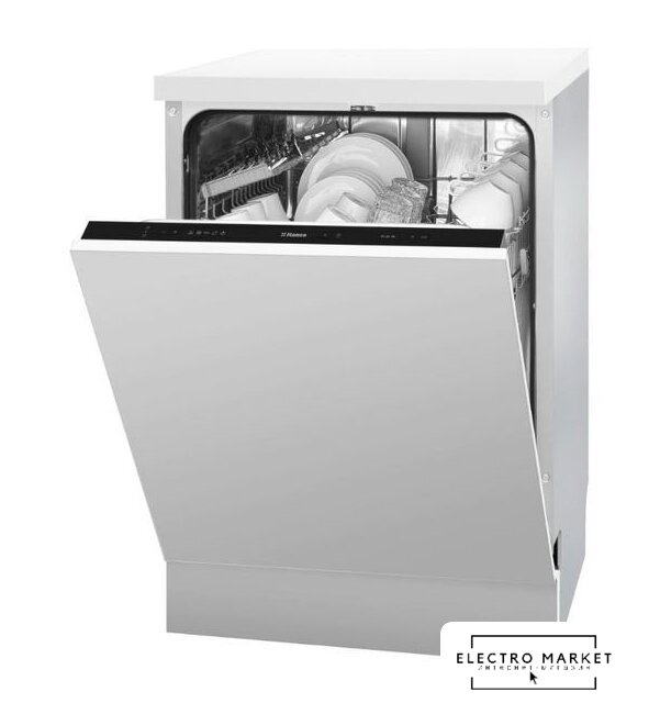 загрузка на 12 комплектов посуды, электронное управление, 6 программ, 59.8x55x82 см, черный цвет, сушка: стандартная (конденсация), индикация на полу: луч
